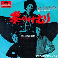 こちらは定価500円ですからさほど古くはないのですが、ジャケ写の加工はプレスリーと変わらない気もします。まあジミヘンのセカンド・シングルですから、1967年ということになりますが、オリジナル・リリースなのやら?7インチとなると、情報が少なくてよく分かりません。それにしても凄いのがB面曲の邦題。「第51回記念祭」ときましたか。直訳ではそれもありですかね。一体何の歌やら…。長く連れ添った夫婦のことから始まって、どんどん短い年数になって、倦怠期を歌っているみたいですから、せめて記念日にしておいて欲しかったですね。…A面は、まあ、言わずもがなの名曲です。 |