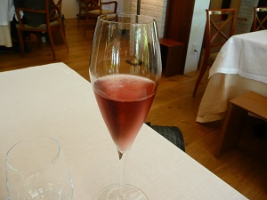 主目的は、リストランテ・プリマヴェーラ。当然アルコールは飲めない。これはココ・ファームの発泡ロゼ・ジュース。 |
