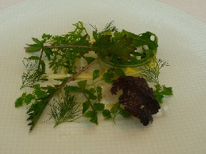 水だこのカルパッチョ、非常におしゃれな盛り付けである。 |